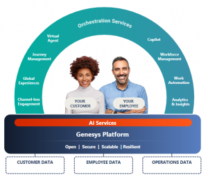 We provide the full contact centre eco-system, with end to-end AI. This enables your contact centre to go further, with intelligent routing (AI-powered natural language and predictive behavioural routing), self-service (AI chatbot), blended agents (AI-infused quality, coaching, recording and scheduling tools), and AI infused analytics.