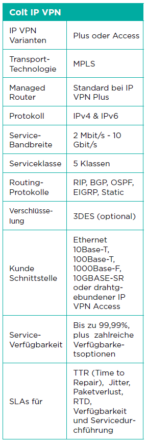 Colt IP VPN bietet folgende