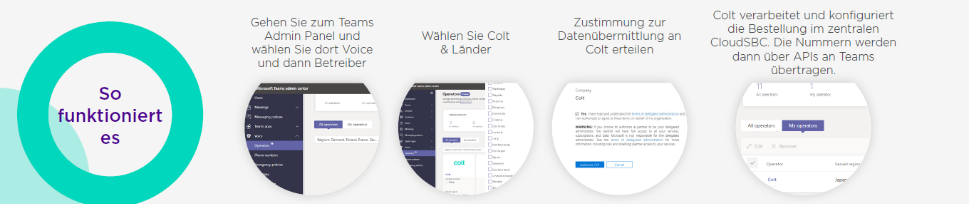 Sie können Ihre bestehenden Verträge und Beziehungen zu Colt fortsetzen und gleichzeitig Aufrufe über Teams aktivieren.