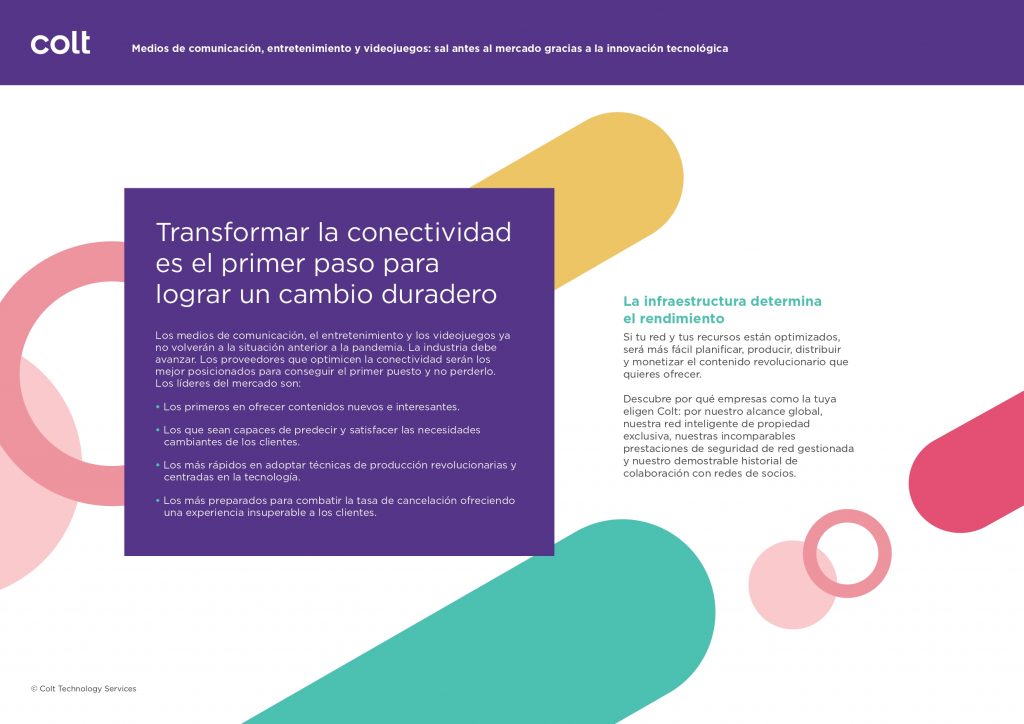 Pero si las empresas de medios no revitalizan las iniciativas de transformación que se han quedado estancadas, no podrán competir. Hay presión para trabajar de forma más rápida, colaborativa y creativa. Para innovar, lo primero es contar con la tecnología y la infraestructura de telecomunicaciones adecuadas.