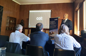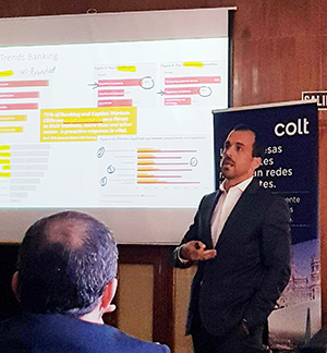 El último ponente ha sido Terence Chabe, Business Development Manager de Colt Technology Services, quien ha traído información sobre los servicios y soluciones de Colt para Capital Markets: Financial Extranet, Portal PrizmNet, soluciones MiFID II, conectividad dedicada, latencia ultra baja, servicios de host y gestión de datos.