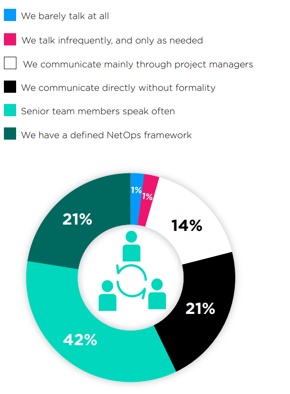Si la collaboration est la clé du succès de tout projet NetOps, de nombreuses entreprises tardent encore à impliquer les bonnes équipes. Plus d’un tiers d’entre elles (35 %) n’incluent pas la sécurité de l’information, ce qui risque de les exposer à de grands dangers, tandis que près de la moitié (42 %) excluent les équipes réseau, entraînant potentiellement une instabilité de leur infrastructure et l’échec de la migration.