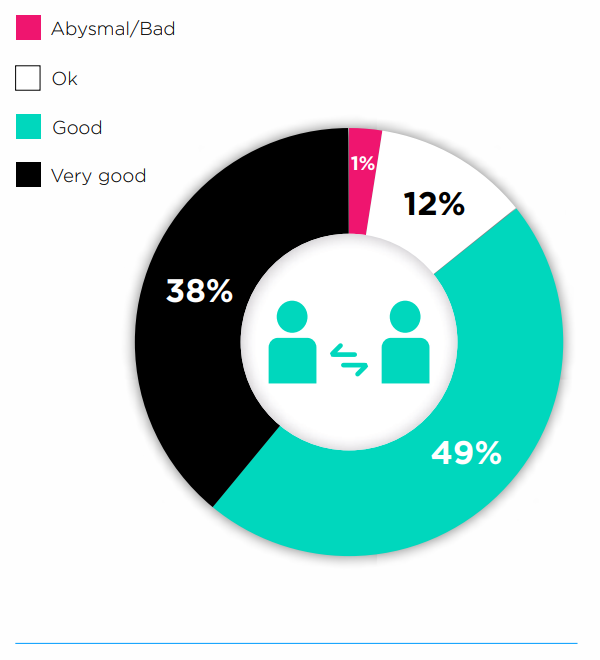 Compte tenu du nombre élevé de services et d’équipes concernés par cette collaboration, l’utilisation d’outils de communication efficaces est plus que jamais indispensable. Si 49 % des personnes interrogées estiment que la communication est « bonne » et 38 % que leurs échanges sont « excellents », seulement 12 % jugent les échanges « corrects » et seulement 1 % les qualifient de « mauvais ».