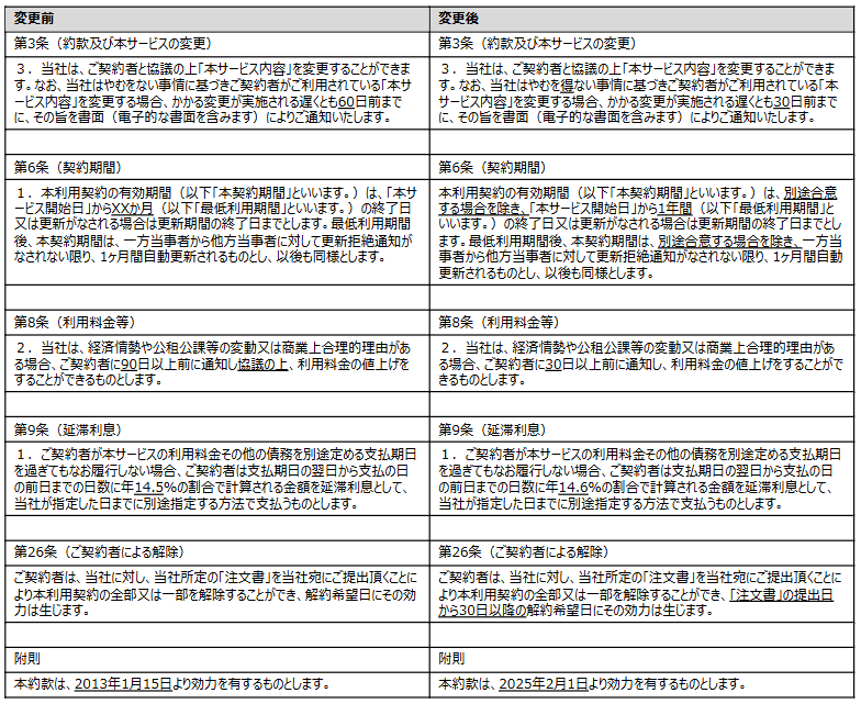 1.変更後の契約約款の適用開始日