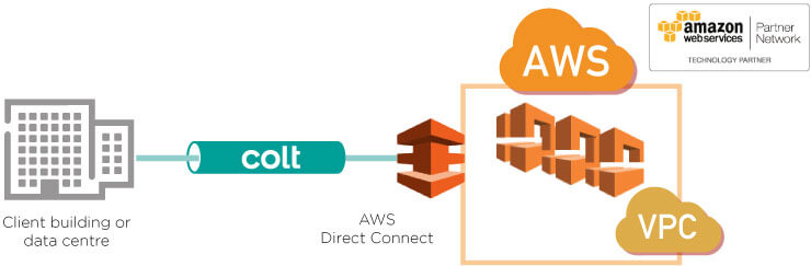 Colt Dedicated Cloud Access is a high-quality and secure network service that connects clients to cloud services (AWS, Azure, Bluemix) using a leased line in a private network.