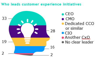 Far fewer CIOs oversee customer experience (CX) programmes (16%) compared to other senior executives like CEOs and CMOs (61%). Still, a whopping majority – 91% – find customer centricity to be either an important or very important initiative