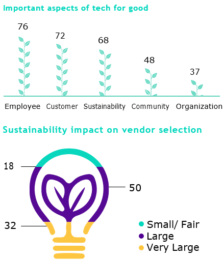 As the data below shows, tech for good also considers stakeholders like employees, customers, the environment, partners, and the worldwide community.